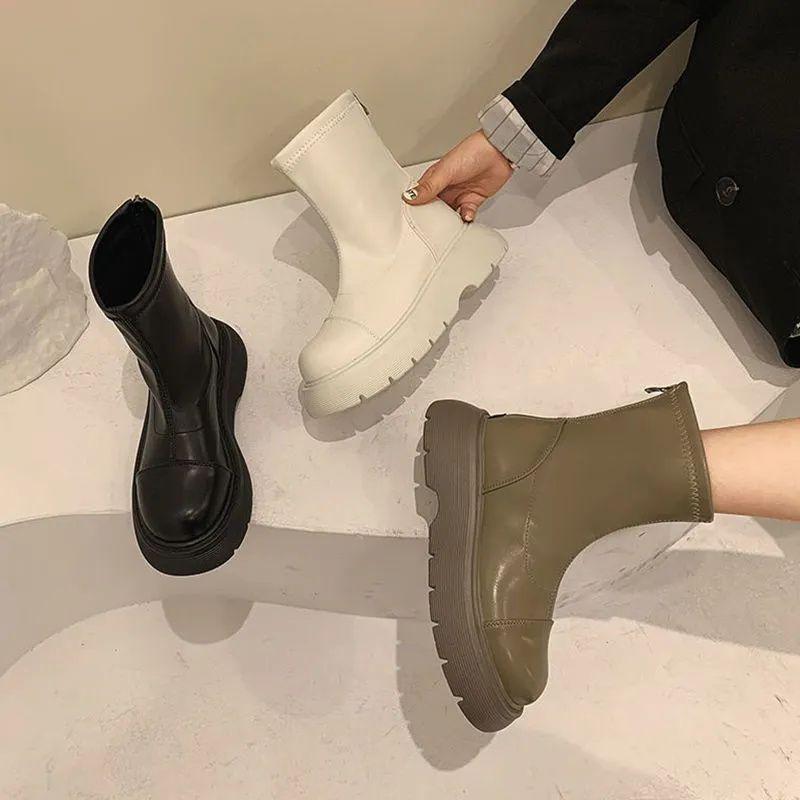 Короткие ботинки женские весна и осень 2025 новые интернет знаменитости мода универсальные молнии кекс толстый низ нескользящие тонкие ботинки прилив