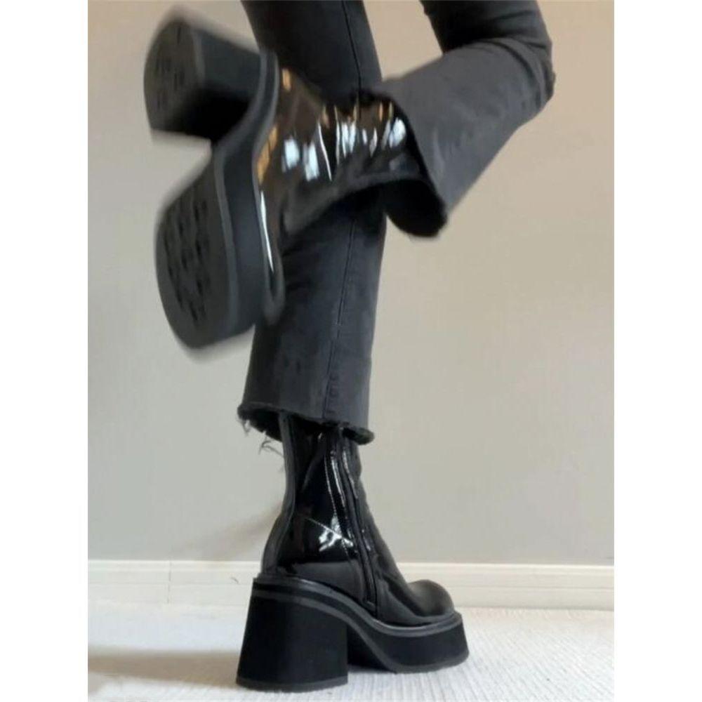 Лакированные маленькие ботинки Мартина женские 2025 новые водонепроницаемые на платформе толстой подошве на высокой эластичной тонкой подошве толстый каблук короткие ботинки