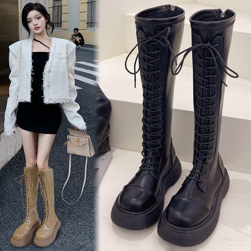 Ботинки на шнуровке, женские новые ботфорты на платформе осень-зима 2025, но ботфорты до колена, облегающие ботинки — купить товар онлайн с бесплатной доставкой по всему миру!
