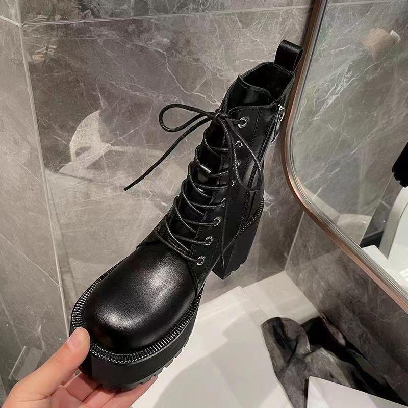 Женские ботинки Мартин на шнуровке с круглым носком и толстым каблуком, водонепроницаемые ботильоны на платформе, маленькие ретро ботинки из мягкой кожи для женщин — купить товар онлайн с бесплатной доставкой по всему миру!