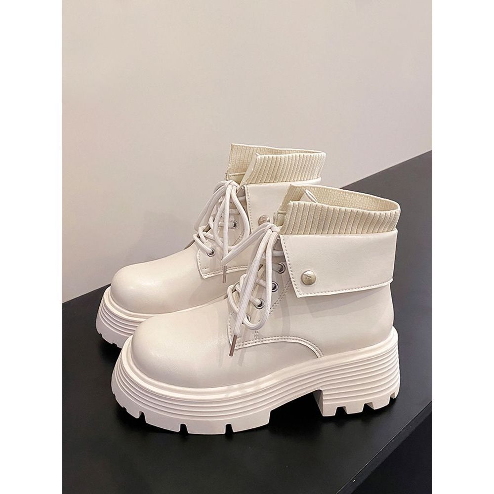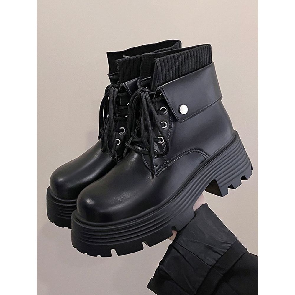 Ретро ботинки Мартин женские осень-зима 2025 новые жареные уличные популярные инс британский стиль черные на толстой подошве увеличивающие рост короткие ботинки