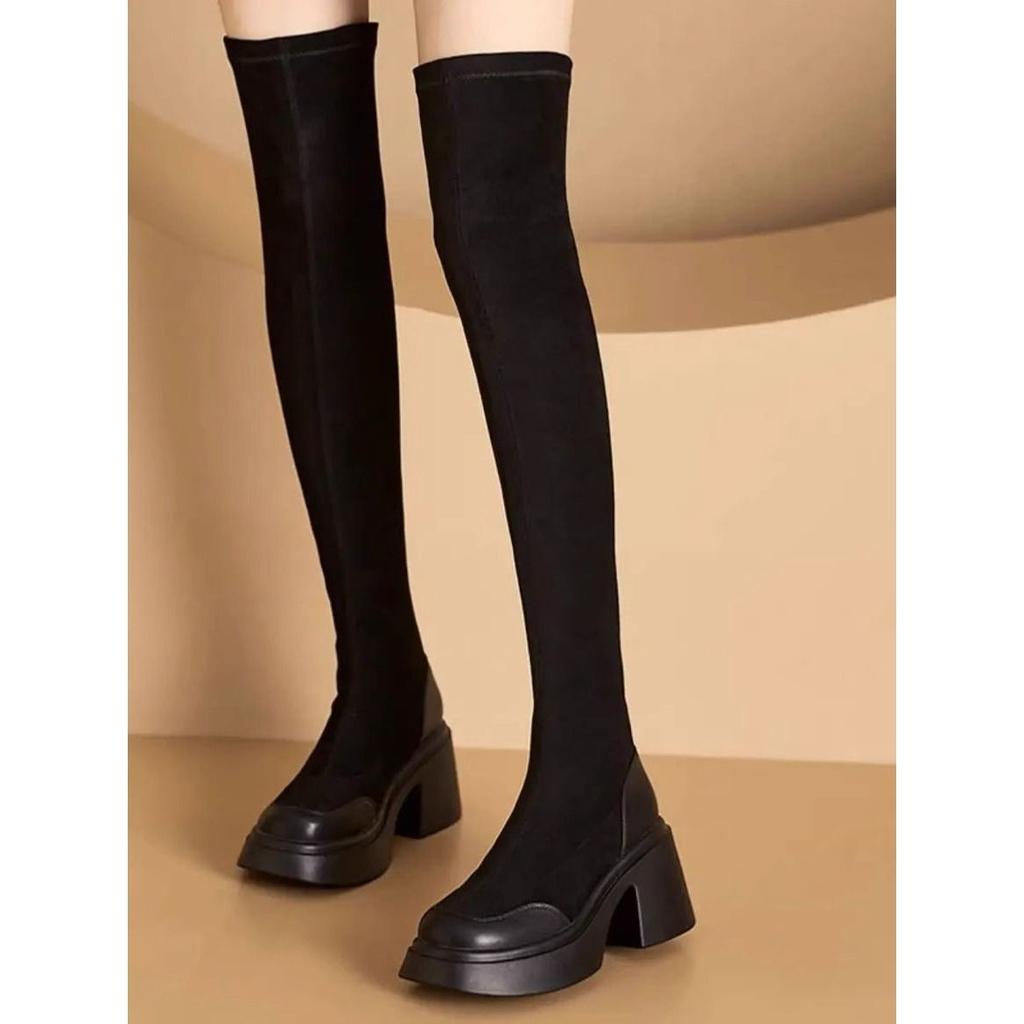 Супер длинные сапоги женские тонкие сапоги-маффины на толстой подошве европейские и американские модные эластичные тонкие сапоги на высоком каблуке