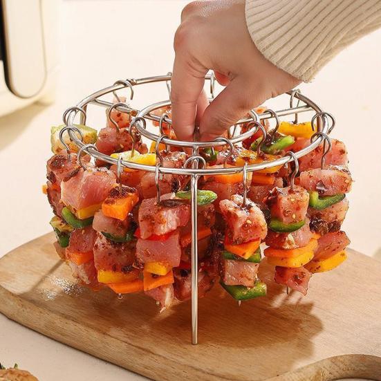 Готовьте полезно с меньшим количеством масла: Примите более здоровые кулинарные привычки, используя эти шампуры для аэрофритюрницы, которые способствуют приготовлению с низким содержанием масла, сохраняя при этом естественные ароматы и питательные вещества ваших продуктов.. Попрощайтесь с чрезмерным использованием масла и наслаждайтесь блюдами без чувства вины при каждом употреблении.
