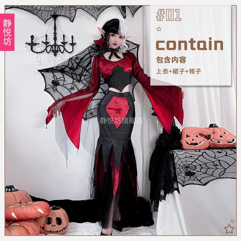 Хэллоуин Взрослый Костюм Черно-Белая Ведьма Вампир Длинное Платье Платье Ведьмы Платье Королевы Призрачная Невеста Куила