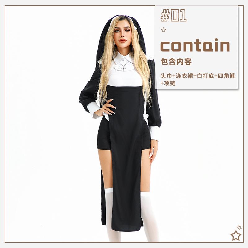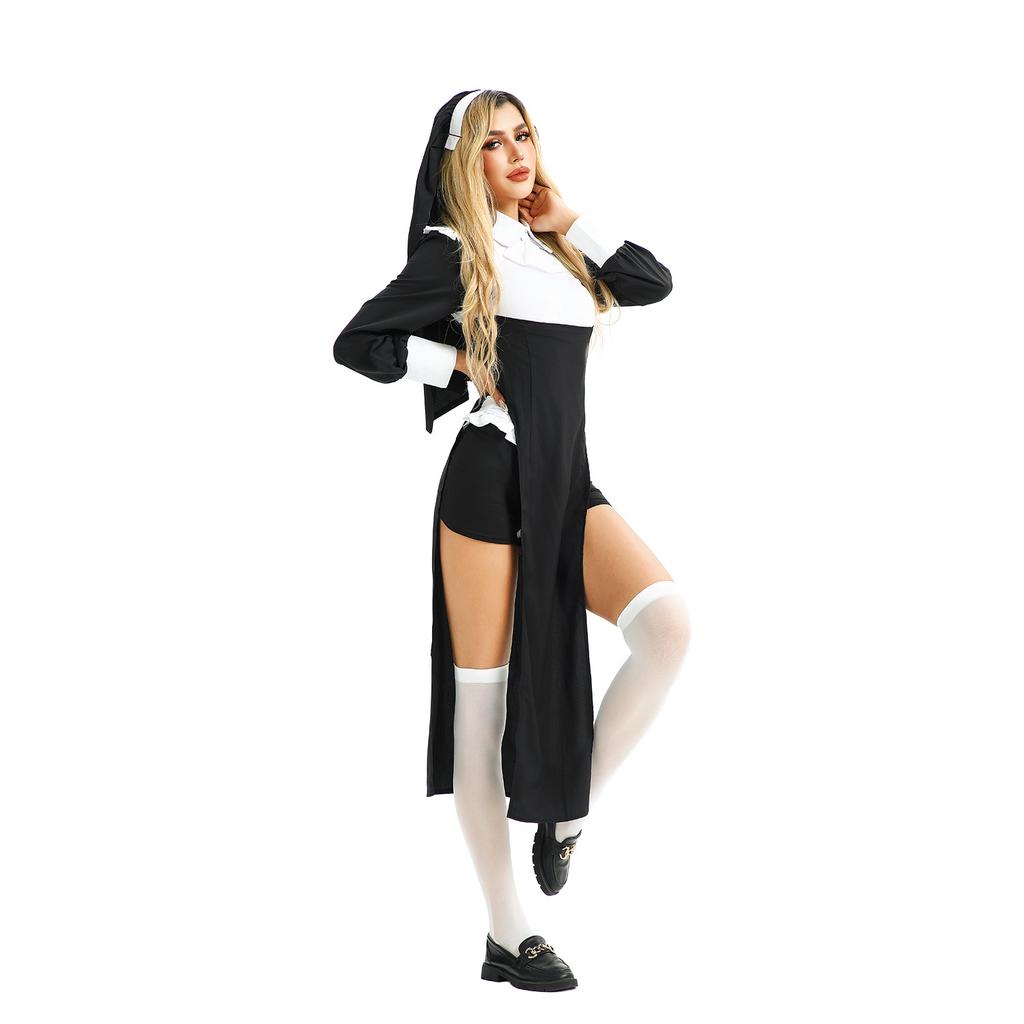 Хэллоуинский костюм мрачного жнеца, сценический костюм монахини, сексуальные красотки, облегающий костюм горничной, плащ большого размера