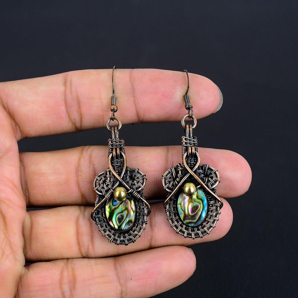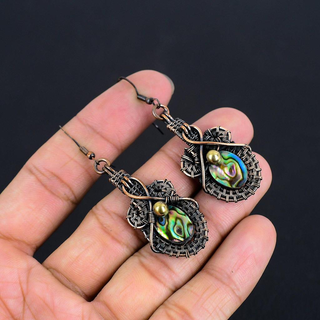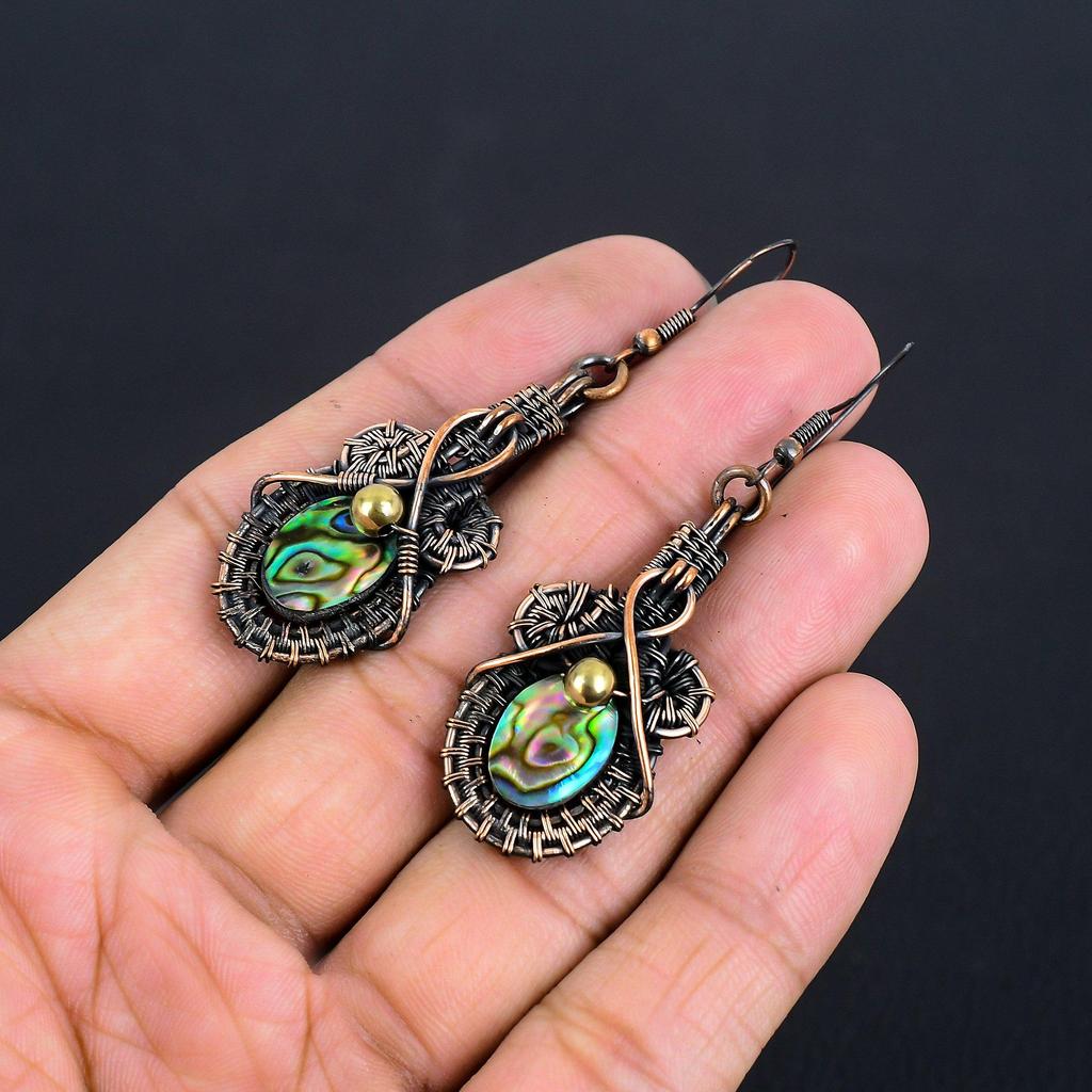 Серьги из раковины абалона, обернутые медной проволокой 999 пробы, Ювелирные изделия с драгоценными камнями ручной работы, Подарки для жены, Совершенно новые серьги