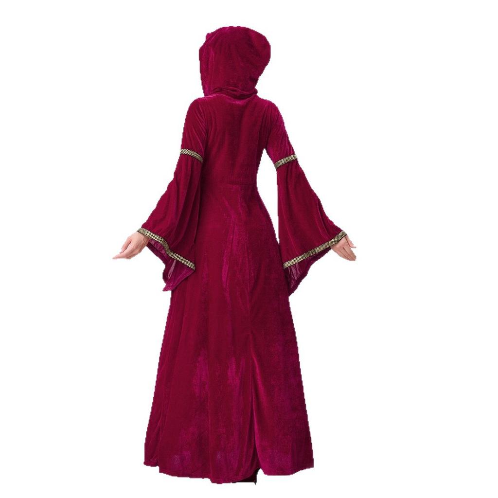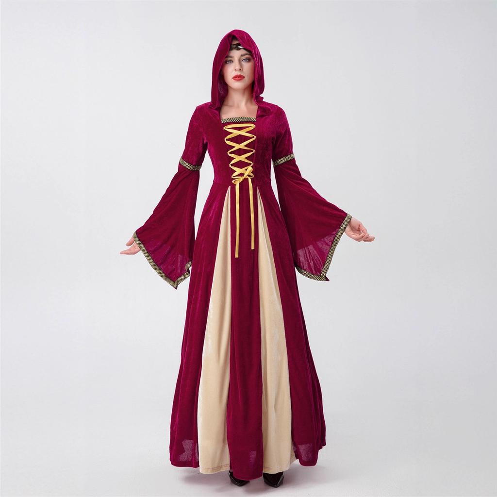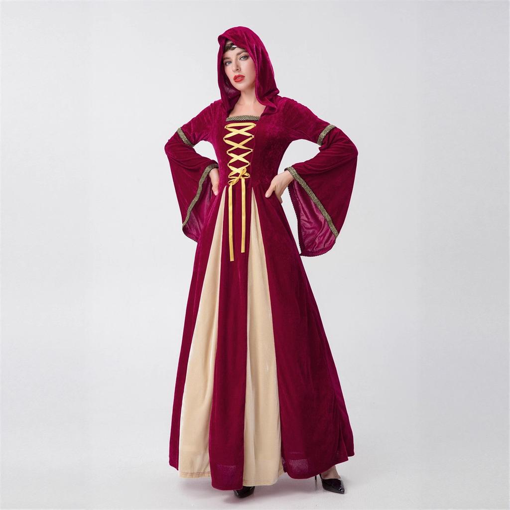 Хэллоуин Взрослый Костюм Европейский Средневековый Придворный Стиль Платье Ретро Длинное с Капюшоном Костюм для Выступления Благородной Королевы