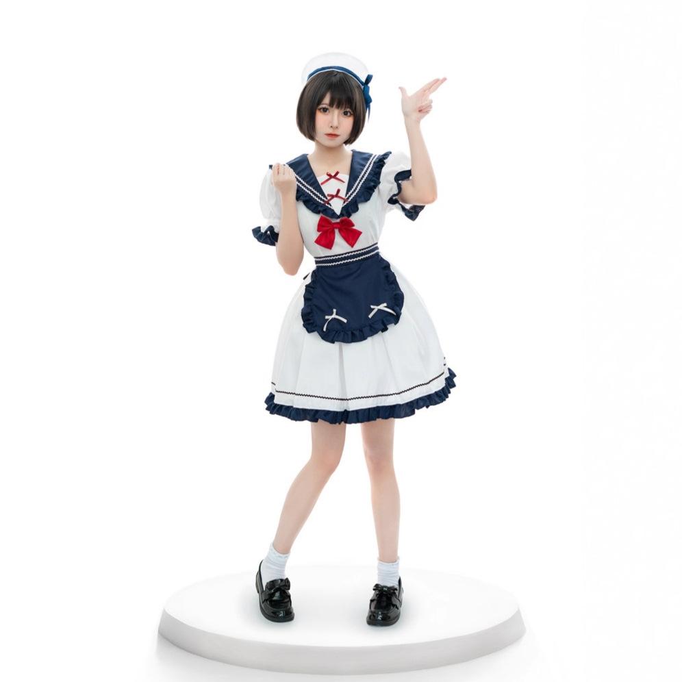 Хэллоуин Маленькое темно-синее платье Милое платье лолиты горничной Наряд для вечеринки-маскарада