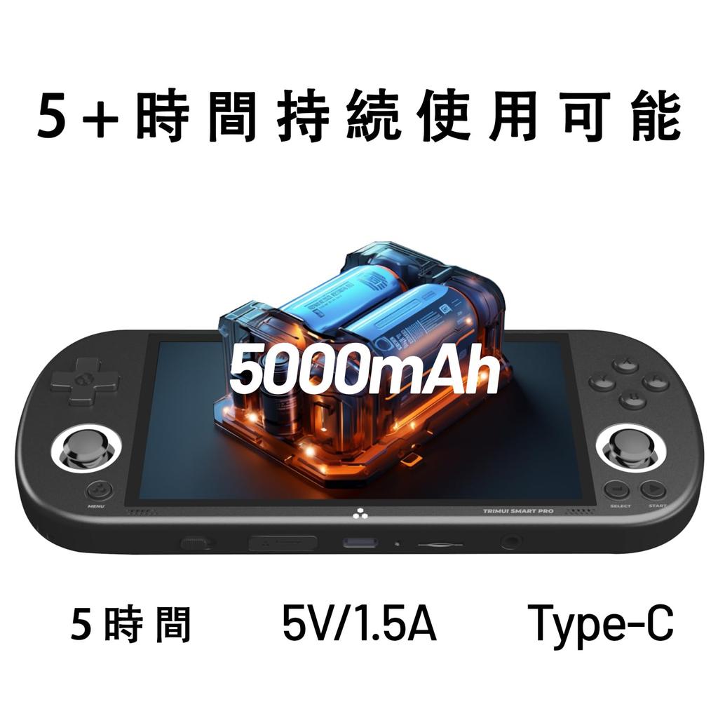 【Большая емкость 5000 мАч】TRIMUI SMART PRO имеет встроенную литиевую батарею емкостью 5000 мАч, которая обеспечивает долгое время ожидания и долгое время полета. Наслаждайтесь душевным спокойствием, когда вы гуляете или путешествуете.