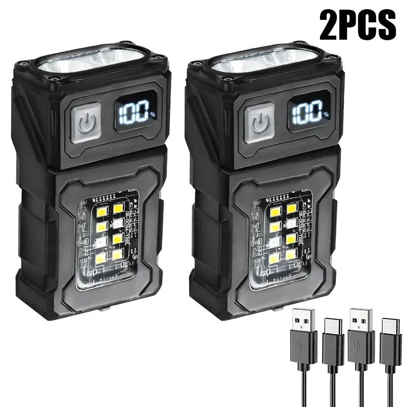 2/1Pcs Portable Flashlight Super Bright MINI USB Rechargeable LED Tail MagnetTorch with COB Emergency Light for Camping Hiking