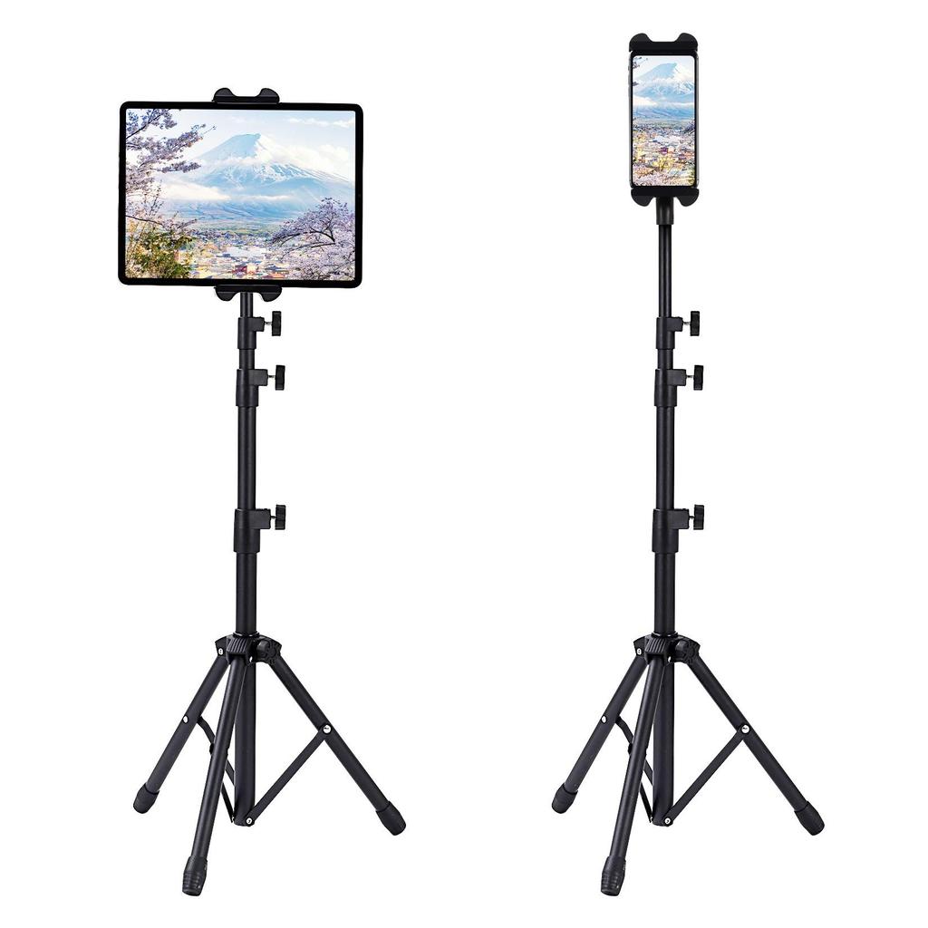 Портативная напольная стойка-штатив для телефона/iPad, регулируемая высота 20-50 дюймов, вращение на 360 градусов для всех сотовых телефонов и планшетов 4-12 дюймов