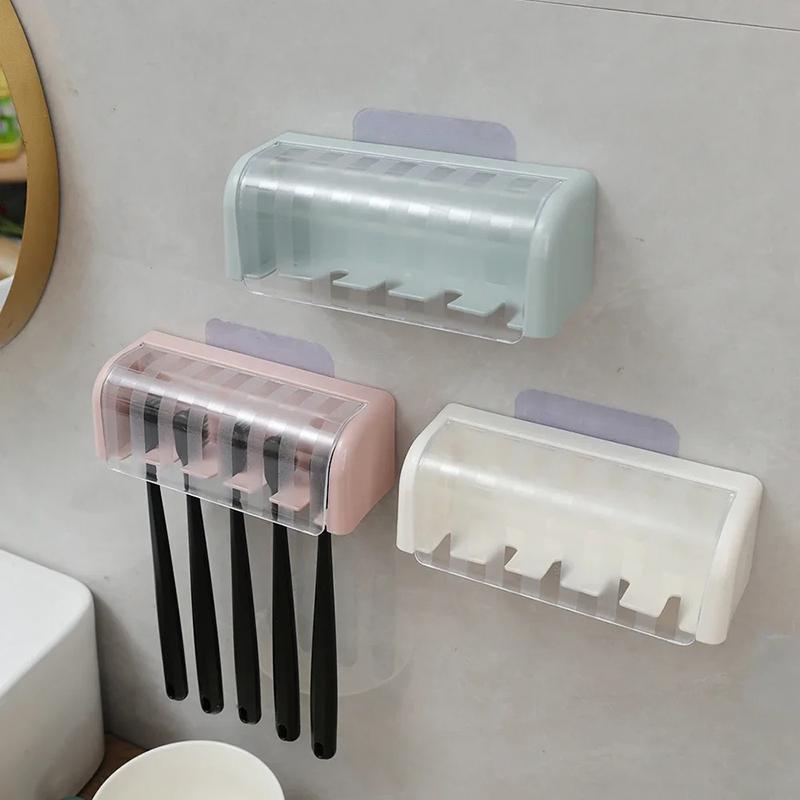 Настенный держатель для зубных щеток в ванной с крышкой на 5 слотов без сверления для домашней ванной комнаты, самоклеящиеся полки для хранения зубных щеток