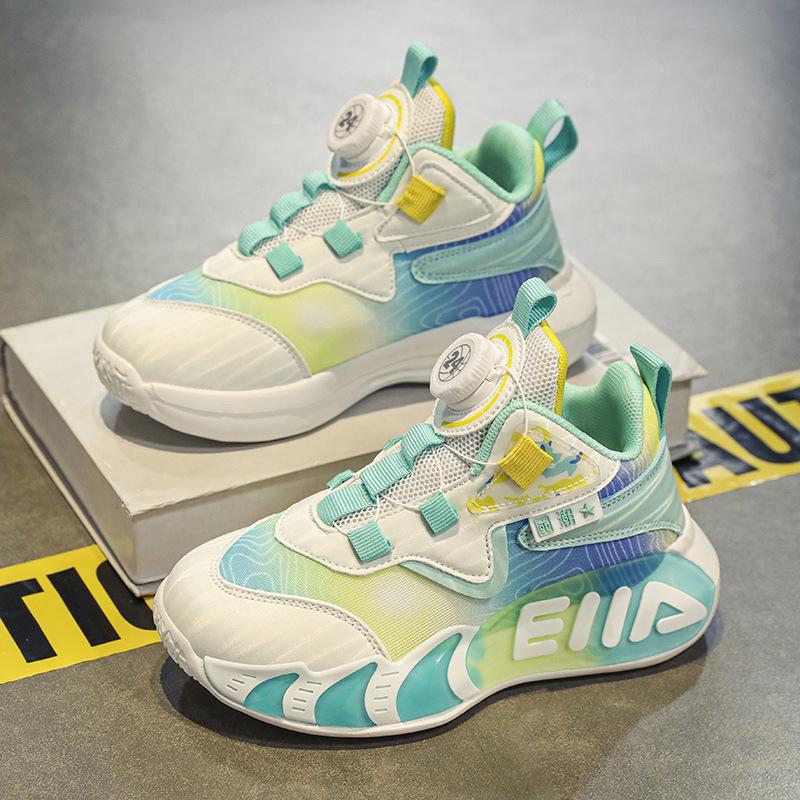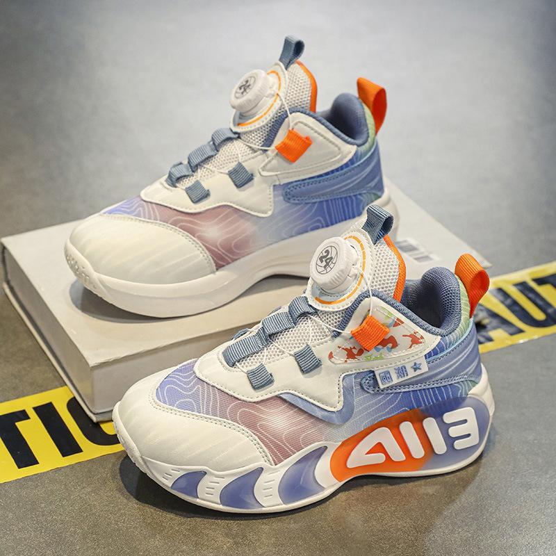 Boys Rotary Buckle 2025 New Spring and Autumn Wear-resistant Sports Shoes Medium and Older Children Boys Mesh Basketball Shoes