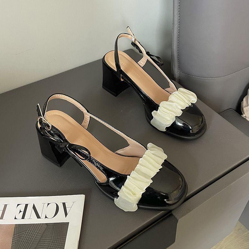 Французский дизайн нишевые туфли-лодочки с бантом, сандалии с закрытым носком и толстым каблуком Мэри Джейн, женские, новинка лета и осени 2025 года