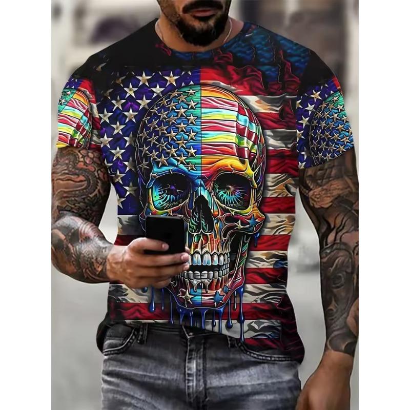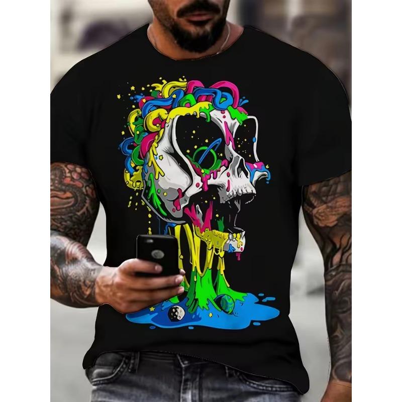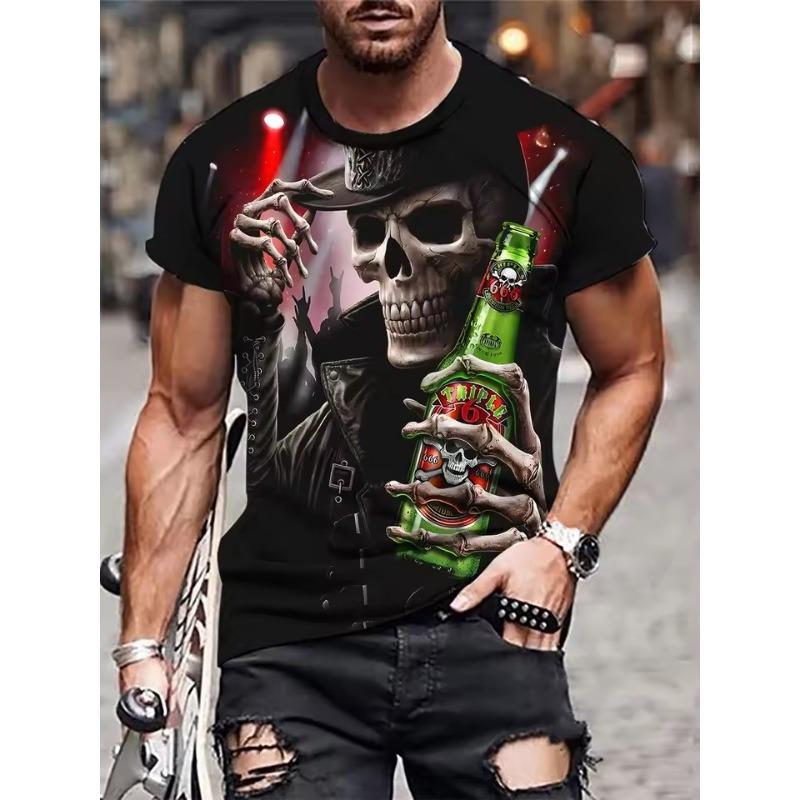 Мужская одежда Футболка с графическим принтом скелета, свободная футболка для мужчин, летняя и весенняя, свободная, в стиле панк, с коротким рукавом, для активного отдыха