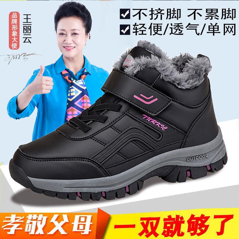 Большие хлопковые туфли для пожилых людей 48 размера, мужские 47 размера, бархатные и хлопковые туфли для мам, нескользящие теплые зимние ботинки для людей среднего возраста и пожилых людей