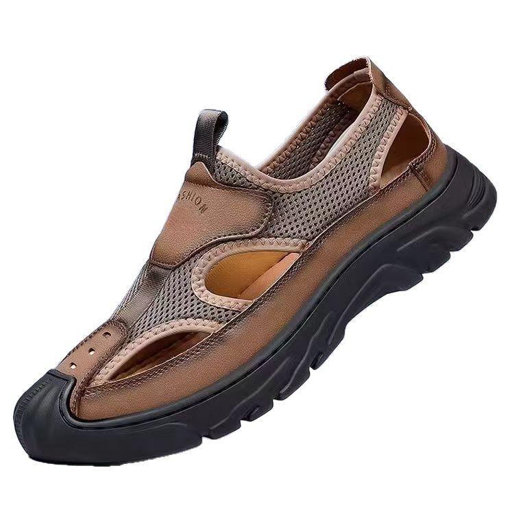 Босоножки Baotou мужские 2025 лето новые сетчатые повседневные пляжные туфли с полым дышащим мягким дном туфли с отверстиями мужские