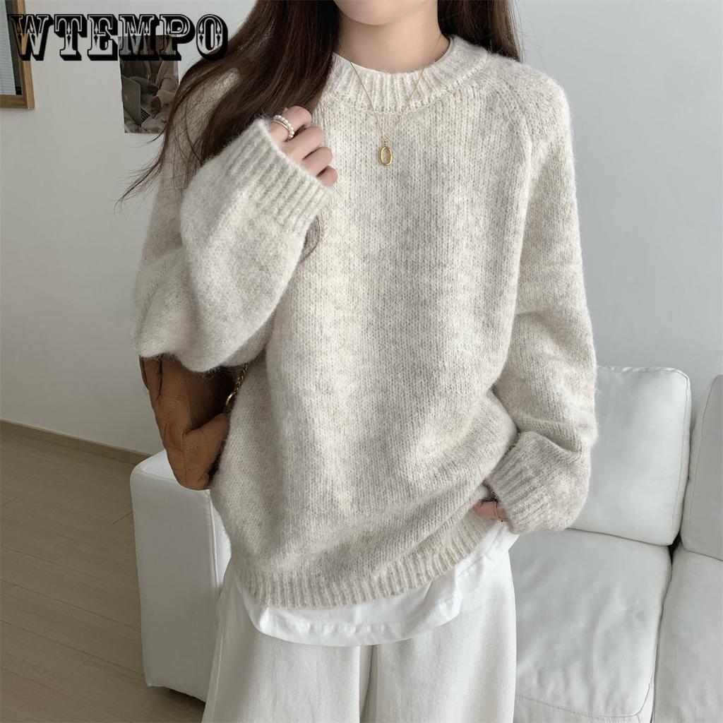 Повседневный пуловер с круглым вырезом для женщин Свободный свитер с длинными рукавами для женщин Однотонный вязаный свитер для осени и зимы