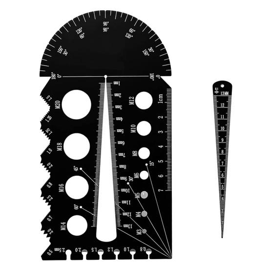 Удобный дизайн: Оснащенный встроенными транспортирами и линейками, этот резьбомер обеспечивает быстрые и эффективные измерения при необходимости, оптимизируя ваш рабочий процесс с легкостью и точностью.