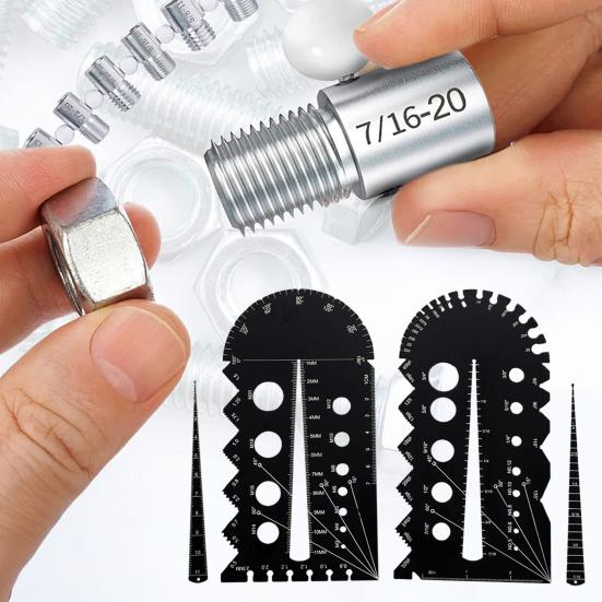 Обеспечьте точные измерения с помощью резьбомера. Изготовленный из прочного металла с лазерной гравировкой шкалы, этот инструмент гарантирует точность для различных материалов, таких как гайки, болты, винты, гвозди, ПВХ и медь..