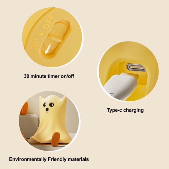 Мягкое и клейкое ощущение: Этот ночник, изготовленный из силикона, АБС-пластика и электронных компонентов, имеет мягкую и клейкую текстуру, приятную на ощупь.. Его нежная текстура улучшает пользовательский опыт, обеспечивая безопасный и экологически чистый вариант, который является прочным и безопасным для детей.