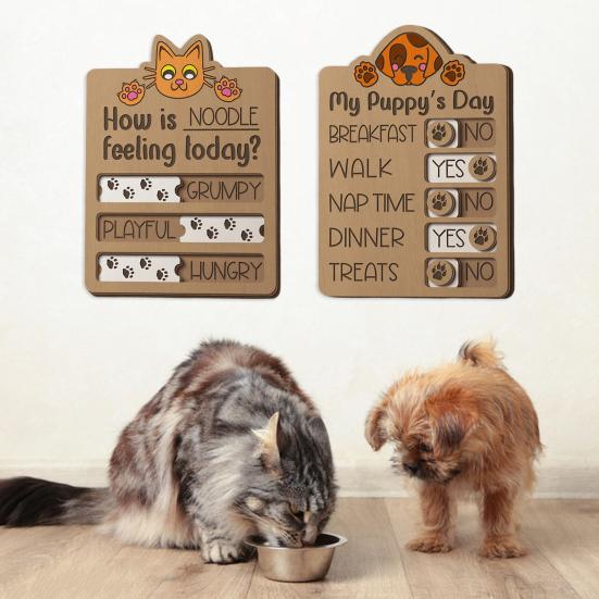 Изготовленный из высококачественной натуральной древесины, этот напоминатель излучает теплое и деревенское очарование, оставаясь при этом безопасным и без запаха для ваших питомцев.. Дизайн, безопасный для питомцев, имеет закругленные углы и прочный деревянный материал, который выдерживает легкое покусывание, что делает его идеальным для оживленных домов с питомцами.. Напоминание о кормлении не только практично, но и отличается стильным дизайном, который дополняет различные стили домашнего декора.. Он служит как функциональным инструментом-напоминанием, так и декоративным акцентом, добавляющим нотку тепла в жилое пространство вашего питомца.. Поздоровайтесь с организованным уходом за питомцем с этим универсальным и очаровательным напоминанием о кормлении.