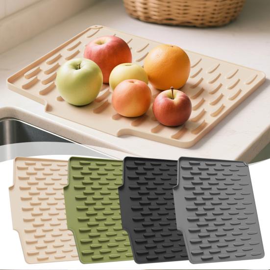Противоскользящая функциональность: Непротекаемый силиконовый коврик оснащен нескользящим основанием для обеспечения устойчивости во время использования, обеспечивая надежную поверхность для сушки посуды и кухонной утвари, при этом его легко чистить и поддерживать в чистоте в условиях загруженной кухни.