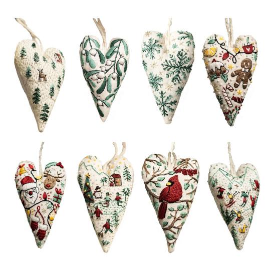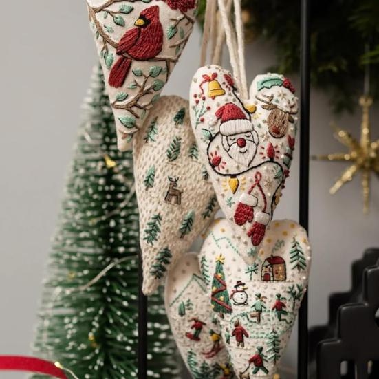Создайте красивые и персонализированные украшения для рождественской елки с этим набором для вышивания в форме сердца.. Идеальный для начинающих и взрослых, этот набор включает в себя ткани с предварительной печатью, нитки, кольца и иглы, чтобы сделать праздничное рукоделие легким и приятным.. Вышивка — это расслабляющее и развивающее навыки ремесло, которое улучшает концентрацию, терпение и креативность.. Добавьте уюта в вашу гостиную или спальню с этими уникальными праздничными украшениями ручной работы.