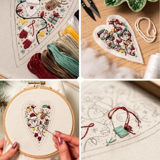 Набор для начинающих «Сделай сам»: Погрузитесь в вышивку без усилий с этим набором в форме сердца. Оснащенный предварительно напечатанными тканями, нитками, кольцами и иглами, он упрощает процесс как для новичков, так и для взрослых.
