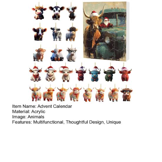 Уникальный 2D-дизайн: Поднимите свой праздничный декор на новый уровень с нашим адвент-календарем в виде шотландской коровы с причудливым 2D-дизайном, который сочетает в себе традиции и очарование, радуя как молодых, так и старых.