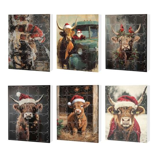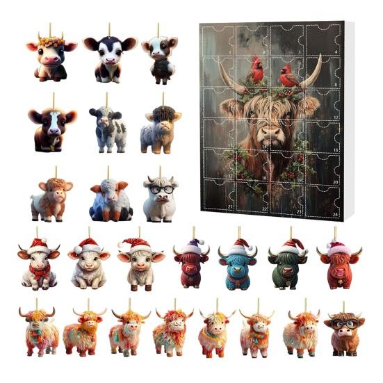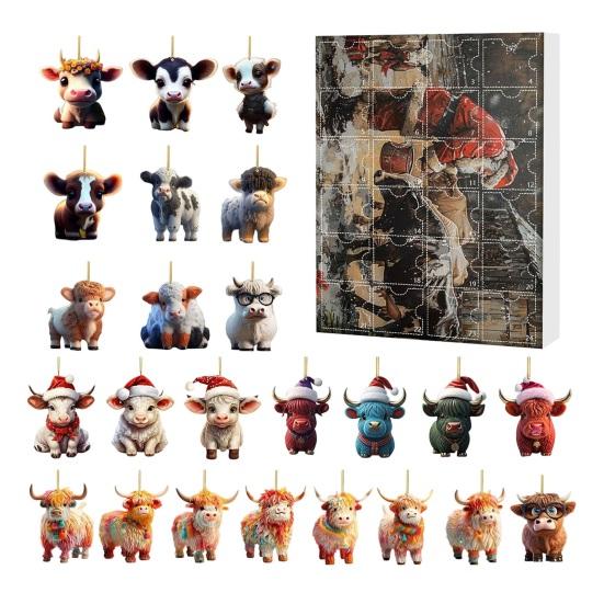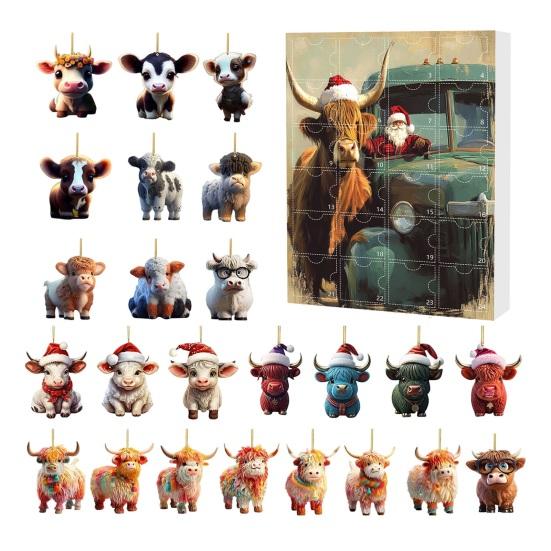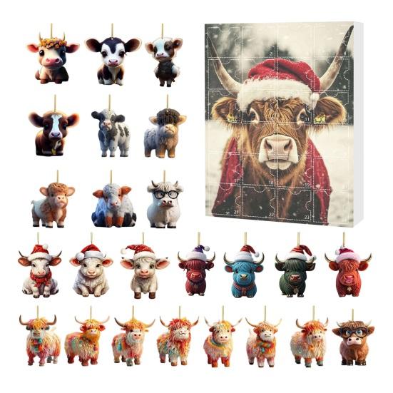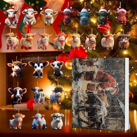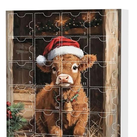 Рождественский обратный отсчет шарм: Почувствуйте праздничное настроение с нашим рождественским адвент-календарем 2025 года, на котором изображена очаровательная корова в рождественской шляпе, создающая идеальную атмосферу радостного предвкушения и веселых празднований.