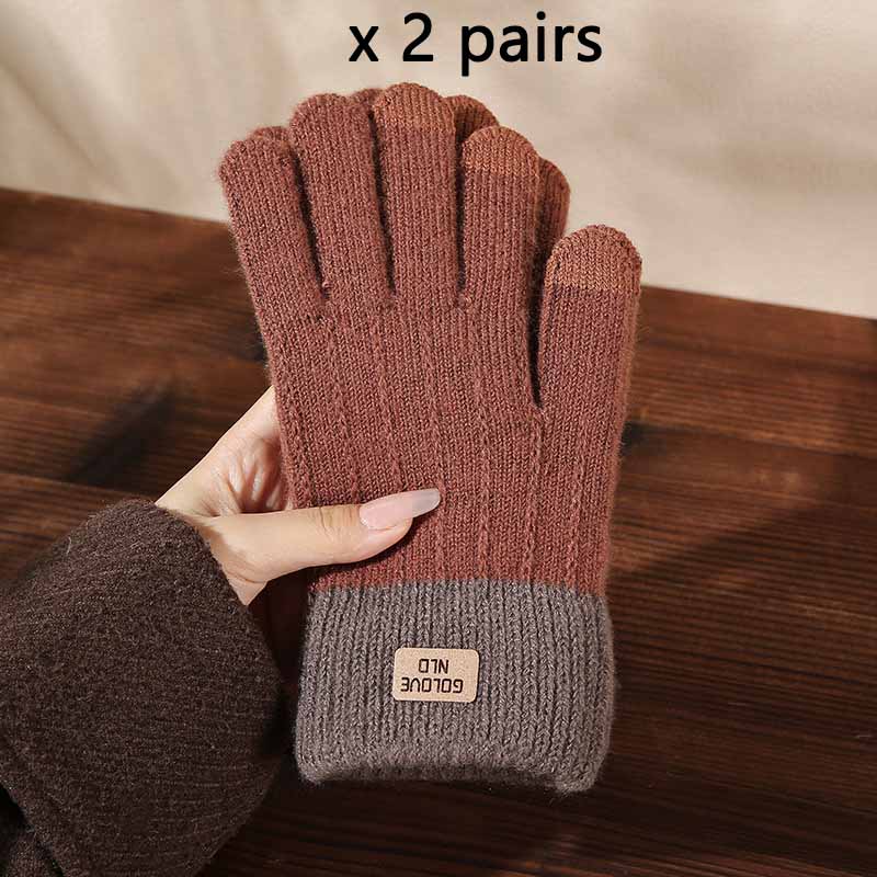 Корейские зимние теплые перчатки с флисовой подкладкой, толстые жаккардовые модные перчатки для улицы, для вождения, пятипалые сенсорные перчатки