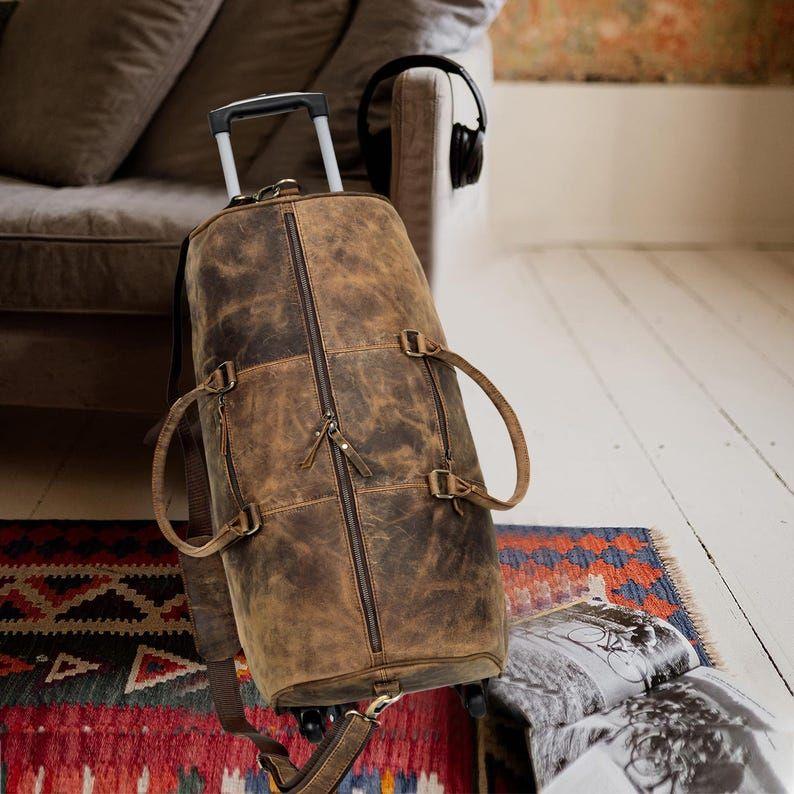 Кожаная сумка-тележка, дорожная сумка из натуральной кожи ручной работы, мужская кожаная дорожная сумка-даффл для выходных, персонализированная подарочная сумка