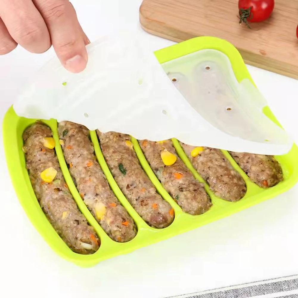 6 ячеек Форма для приготовления колбас Силиконовая форма для приготовления ветчины и хот-догов своими руками с крышкой Кухонные бытовые инструменты Формы для выпечки колбас и тортов