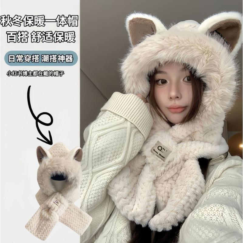 Осенне-зимняя шапка женская милая с лисьими ушками шарф утолщенный интегрированный шарф плюшевая шапка для велоспорта теплая шапка с защитой ушей