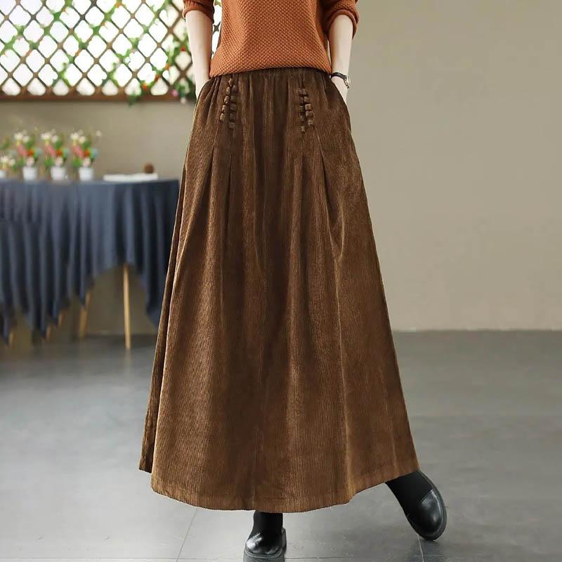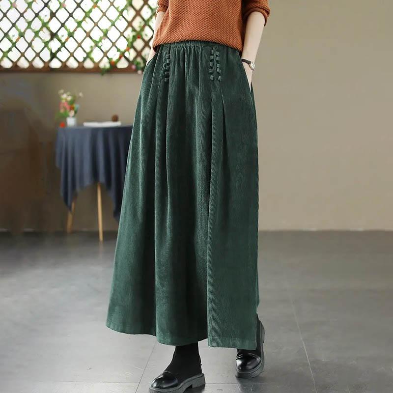 Юбка для женщин Повседневная Универсальная С высокой талией Длинные Свободные Брюки Утолщенная Приталенная Однотонная Юбка