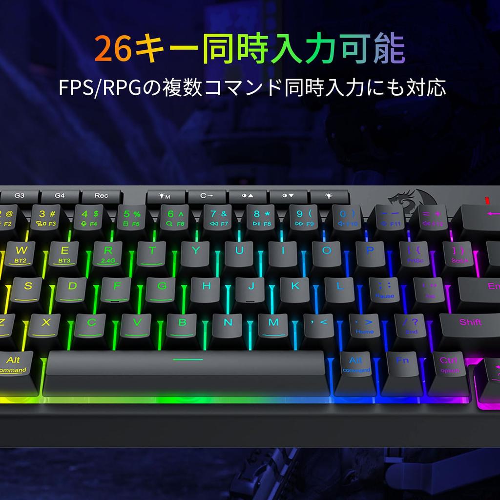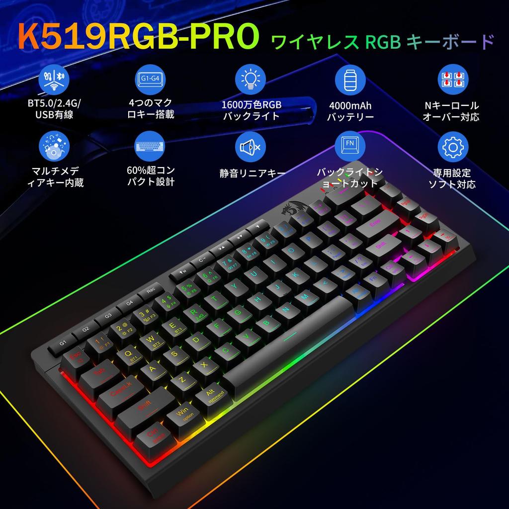 Redragon K519 Wireless Gaming English Quiet Membrane RGB Media Onboard Macro 50 Million Click Compatible with Keyboard, 60% Response, Bluetooth/2.4GHz