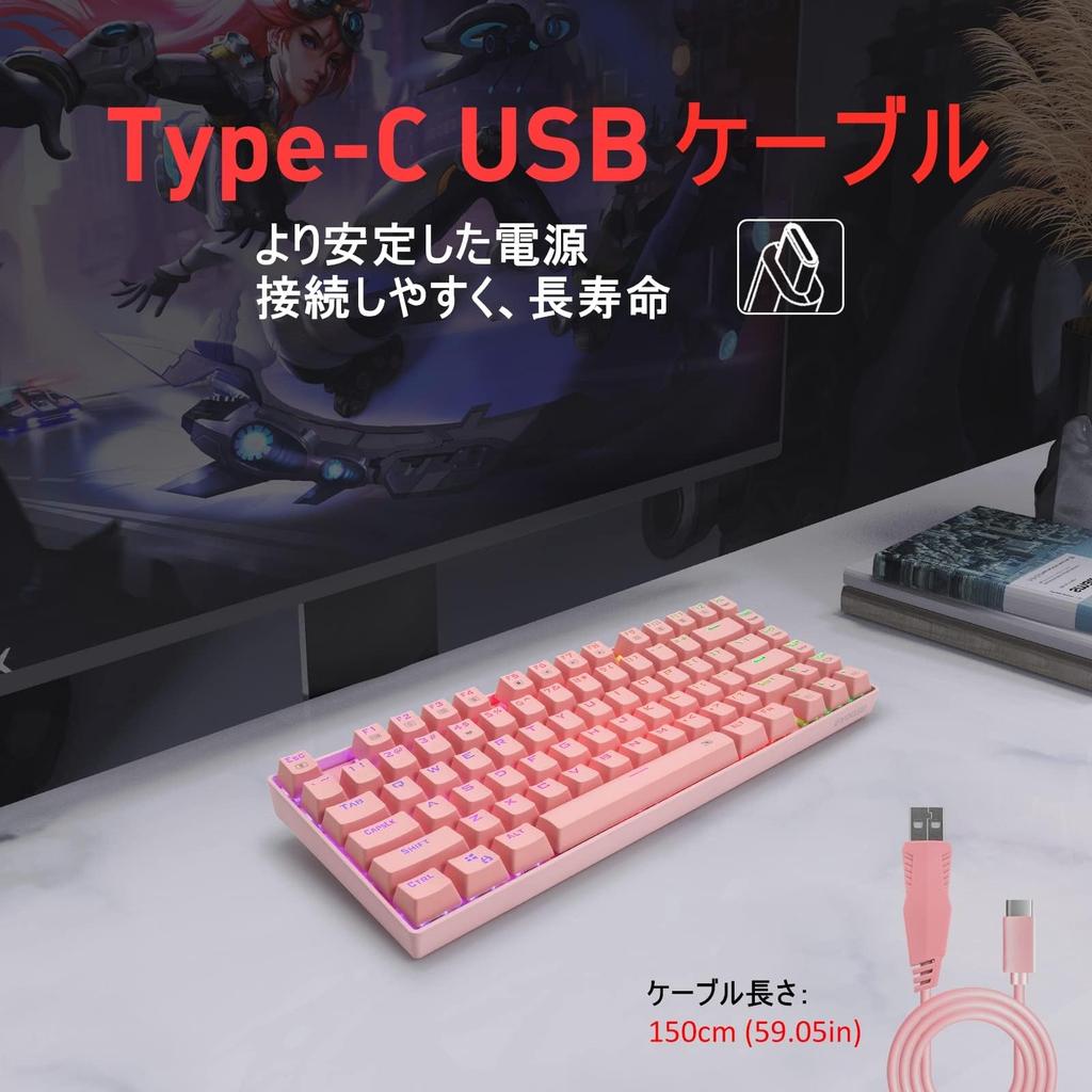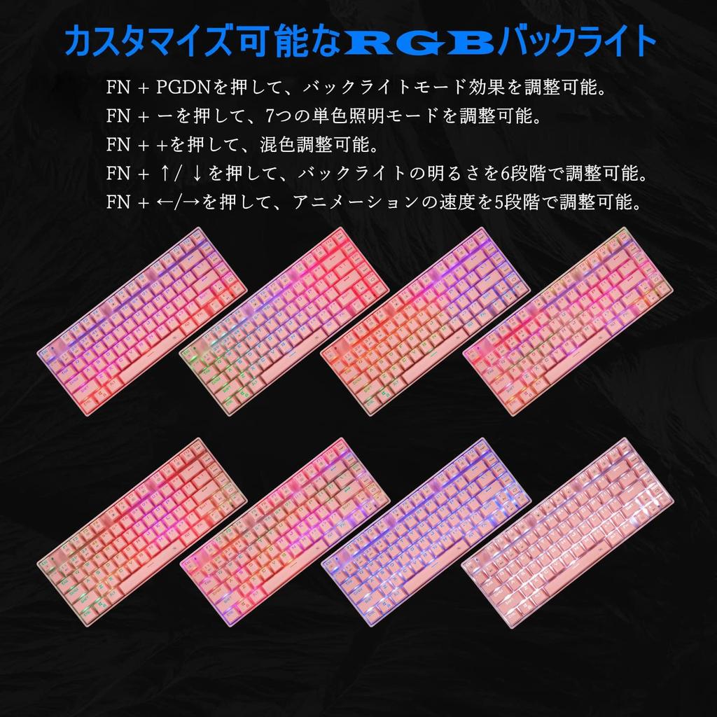 e-Element Gaming Keyboard, 81 Keys, Blue Switch Mechanical Keyboard, 2.4G Wireless and USB Wired Connection Modes, RGB LED Backlight, Wireless Keyboard for Work and Gaming, Compatible with Mac and Windows (Blue Switch, Pink)