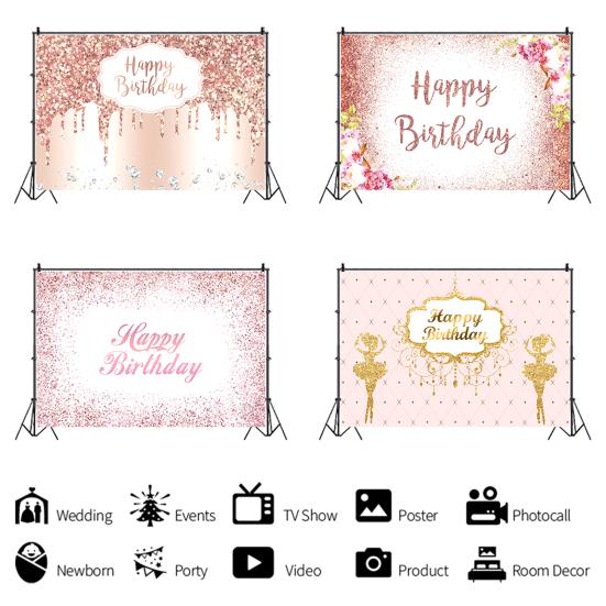 Фоновая ткань добавить атмосферу подвесной блестящий принт декоративный романтический реквизит для фотографии розовый цветочный принт в другом стиле фон для дня рождения