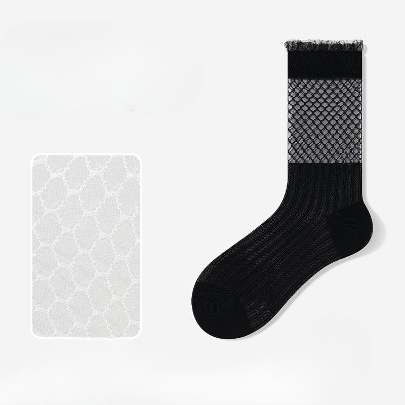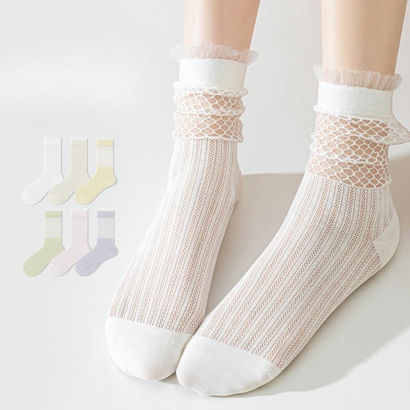 Женские летние тонкие кружевные ажурные дышащие хлопковые носки-гольфы