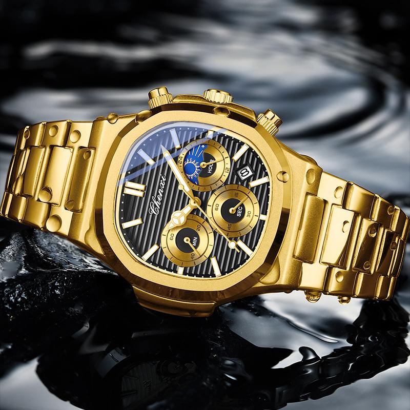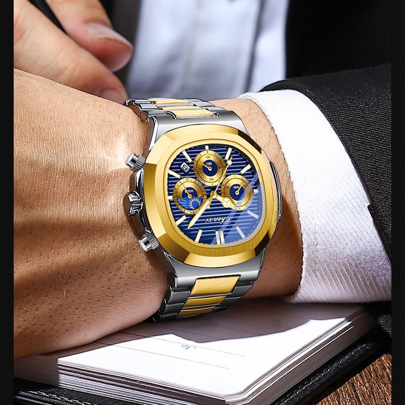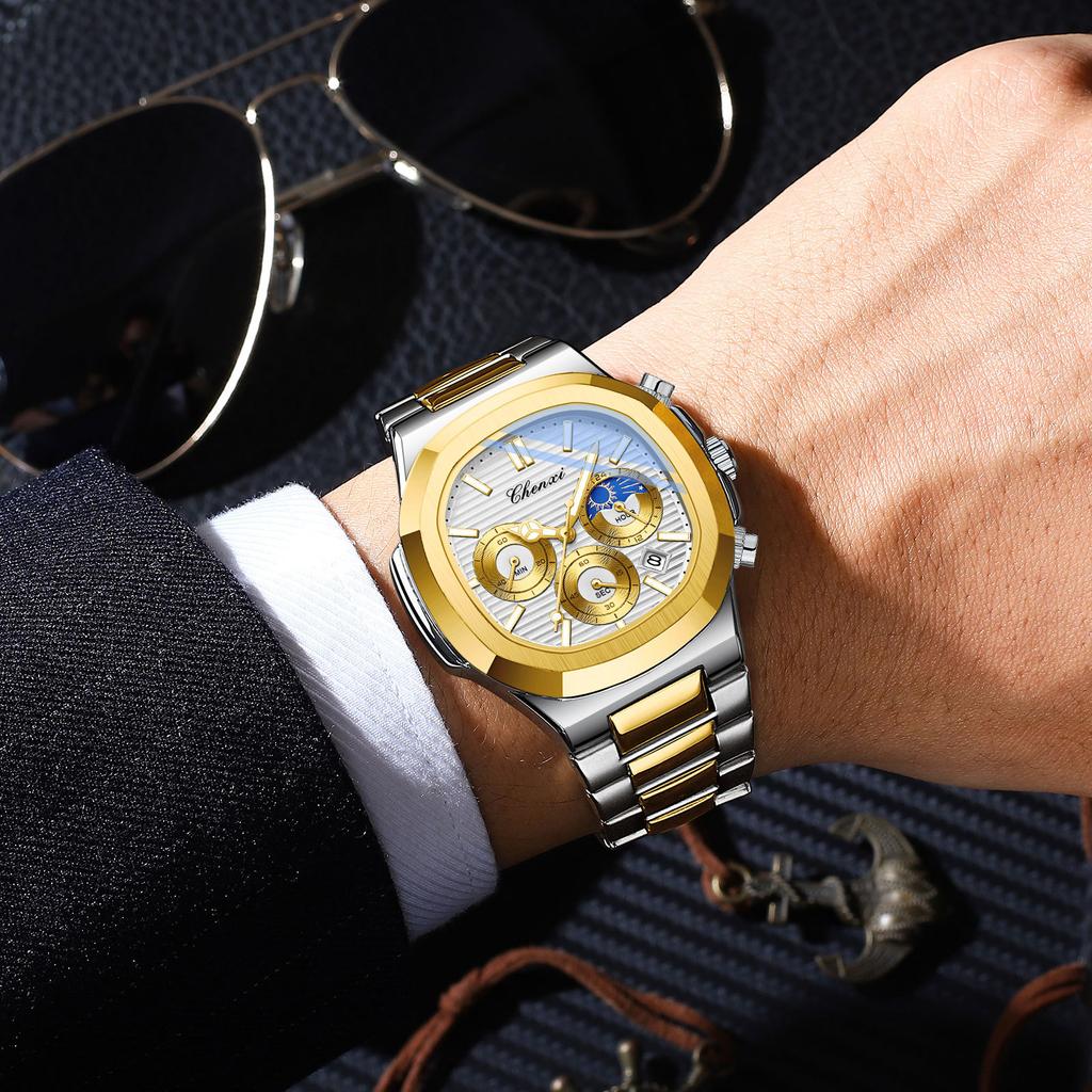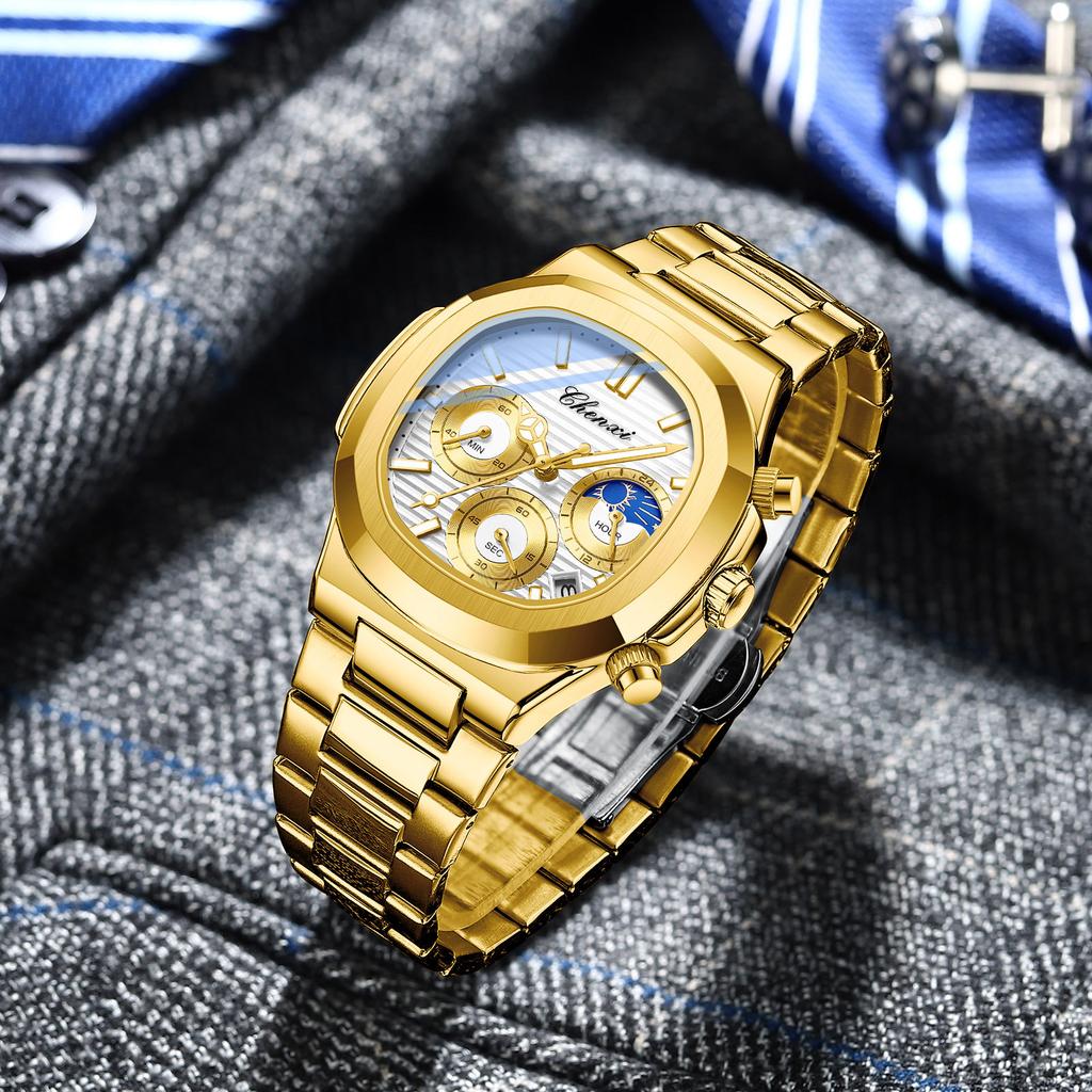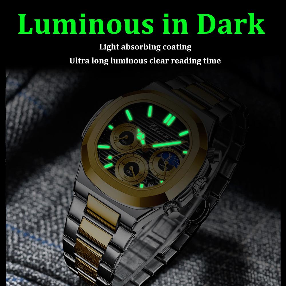 Multi-functional Watches For Man Calendar Moon Phase Chronograph Men's Wristwatch Luminous Business Quartz Watch