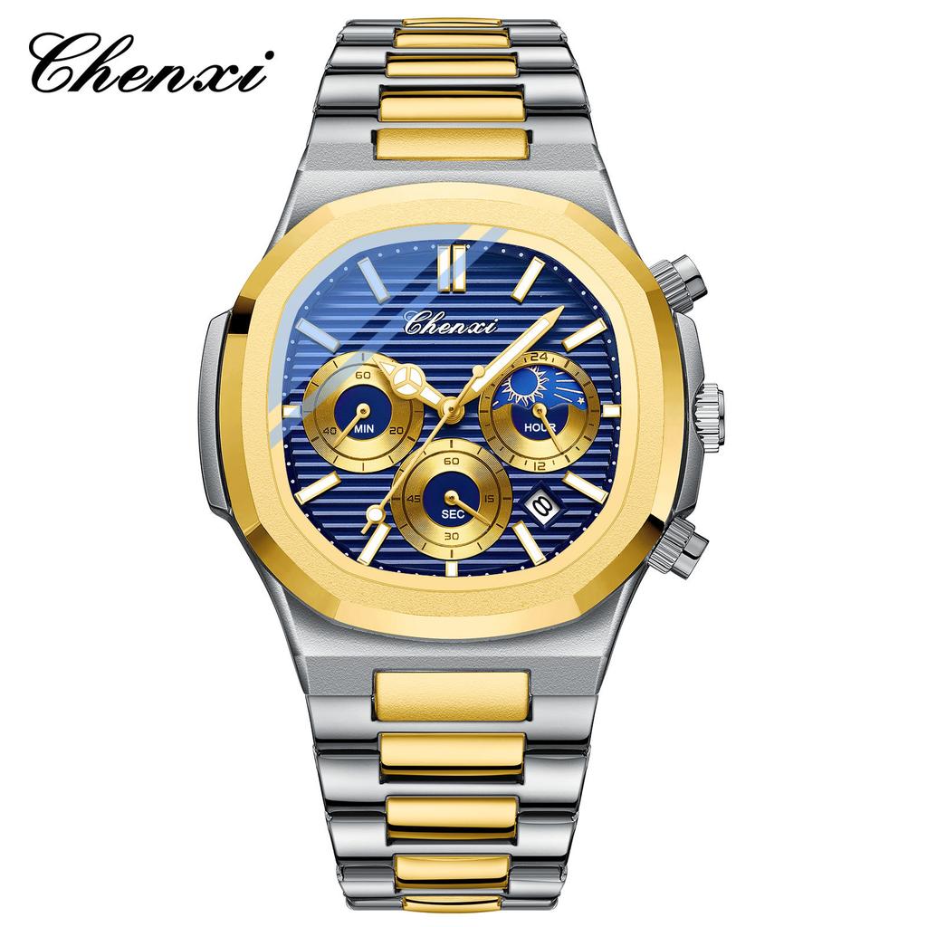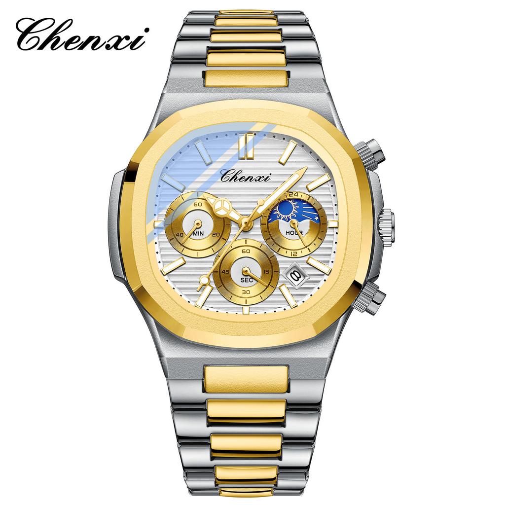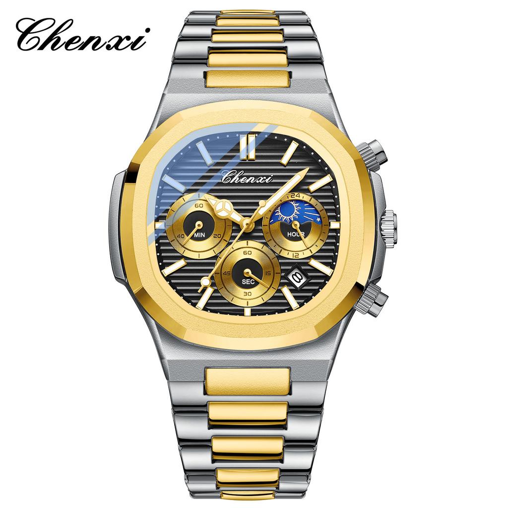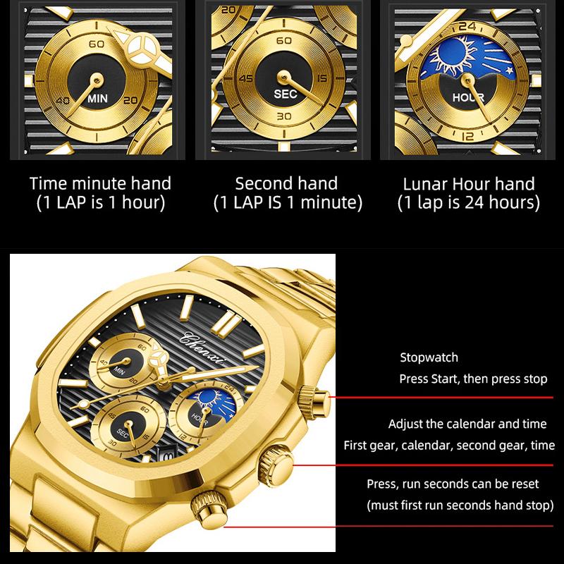 Multi-functional Watches For Man Calendar Moon Phase Chronograph Men's Wristwatch Luminous Business Quartz Watch