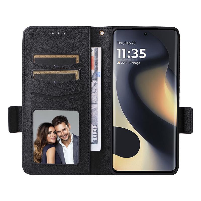 Кожаный чехол для телефона Motorola Edge 2025/2024 с узором личи и слотом для карт