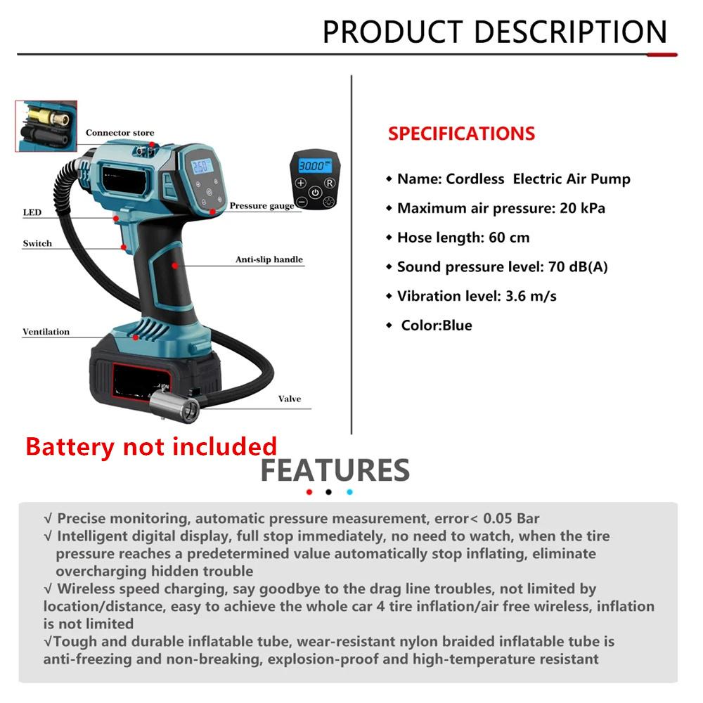 Беспроводной электрический насос-инфлятор Воздушный компрессор для аккумулятора Makita 18 В Светодиодная подсветка