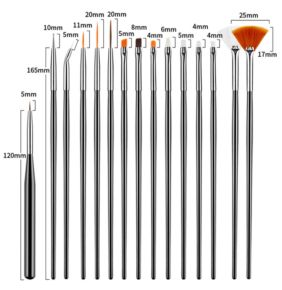Набор из 20 шт. гелевых ручек для дизайна ногтей, кистей для рисования и полировки, инструментов для доттинга и рисования