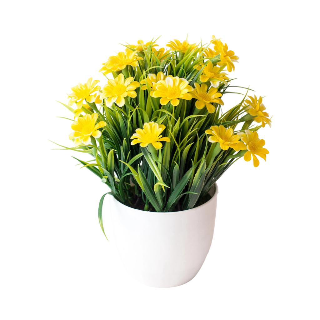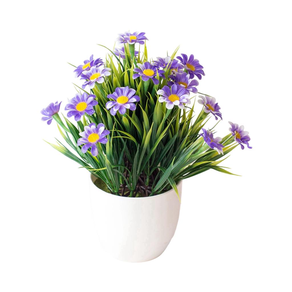 Весенняя трава Хризантема Искусственный цветок в горшке Набор Домашняя имитация Зеленое растение Украшения