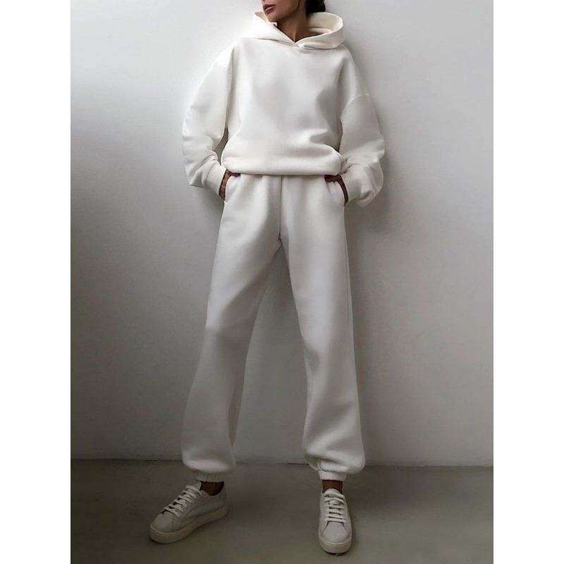 Женские элегантные однотонные комплекты для женщин, теплые толстовки с капюшоном и длинные брюки, модные комплекты из двух частей, женские костюмы с толстовками