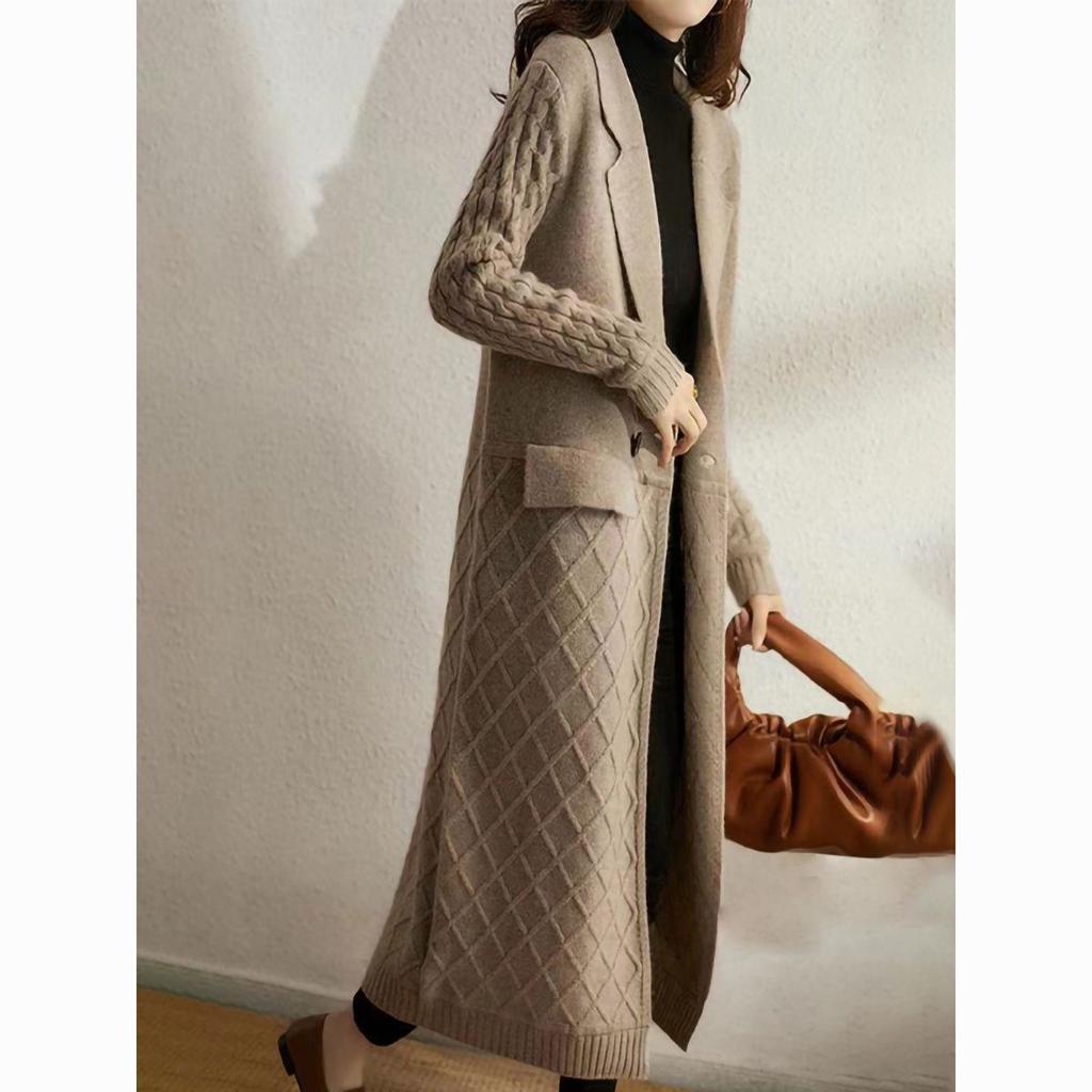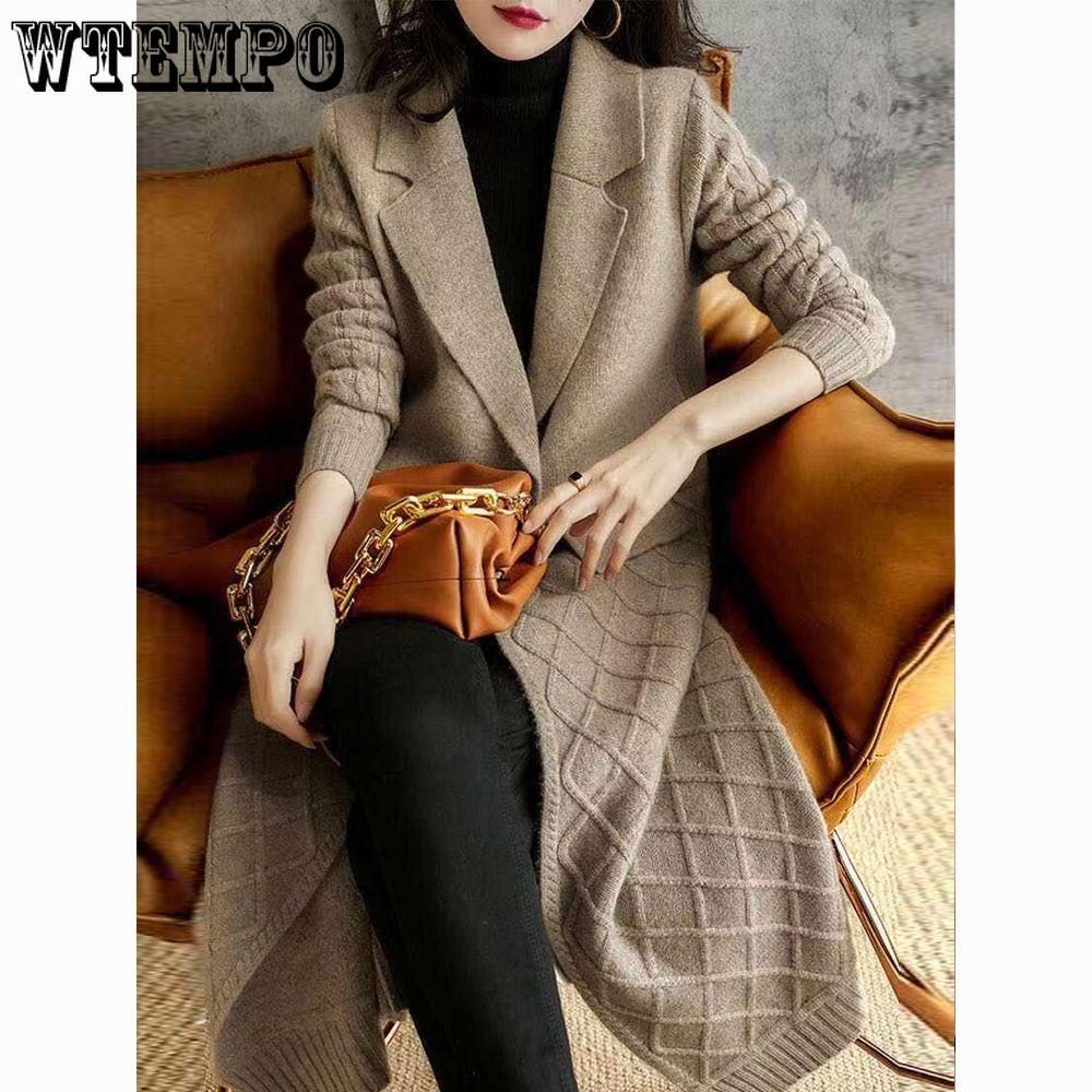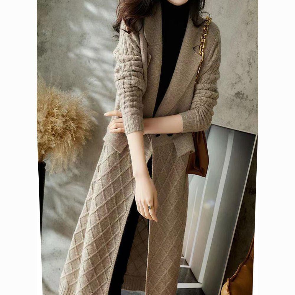 Вязаный кардиган женский однотонный длинный свитер-пальто повседневный свитер с длинным рукавом ветровка