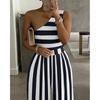 Женский комбинезон на одно плечо Европейский и американский новый женский наряд Пурпурно-синий в полоску Повседневный комбинезон