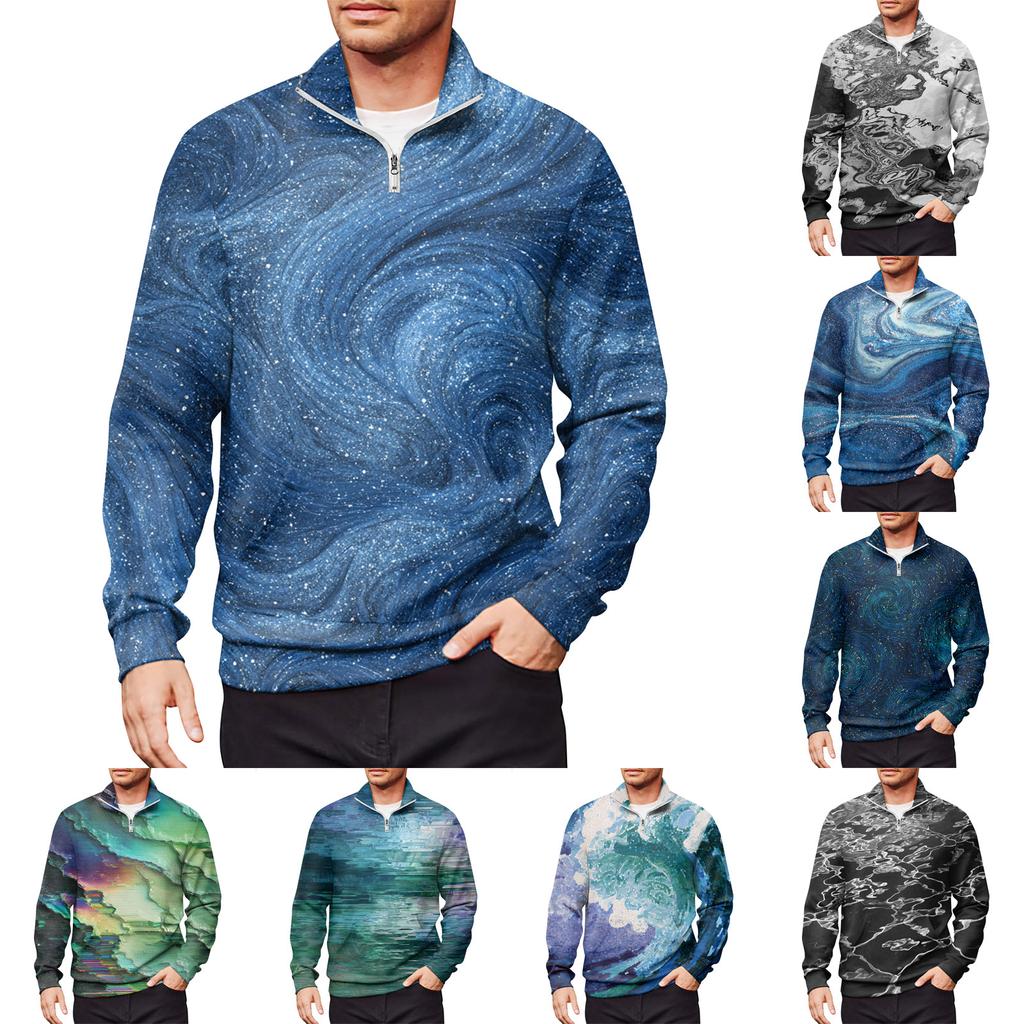 Мужской свободный повседневный свитшот на молнии 1/4, модный топ с длинным рукавом и принтом, с карманами